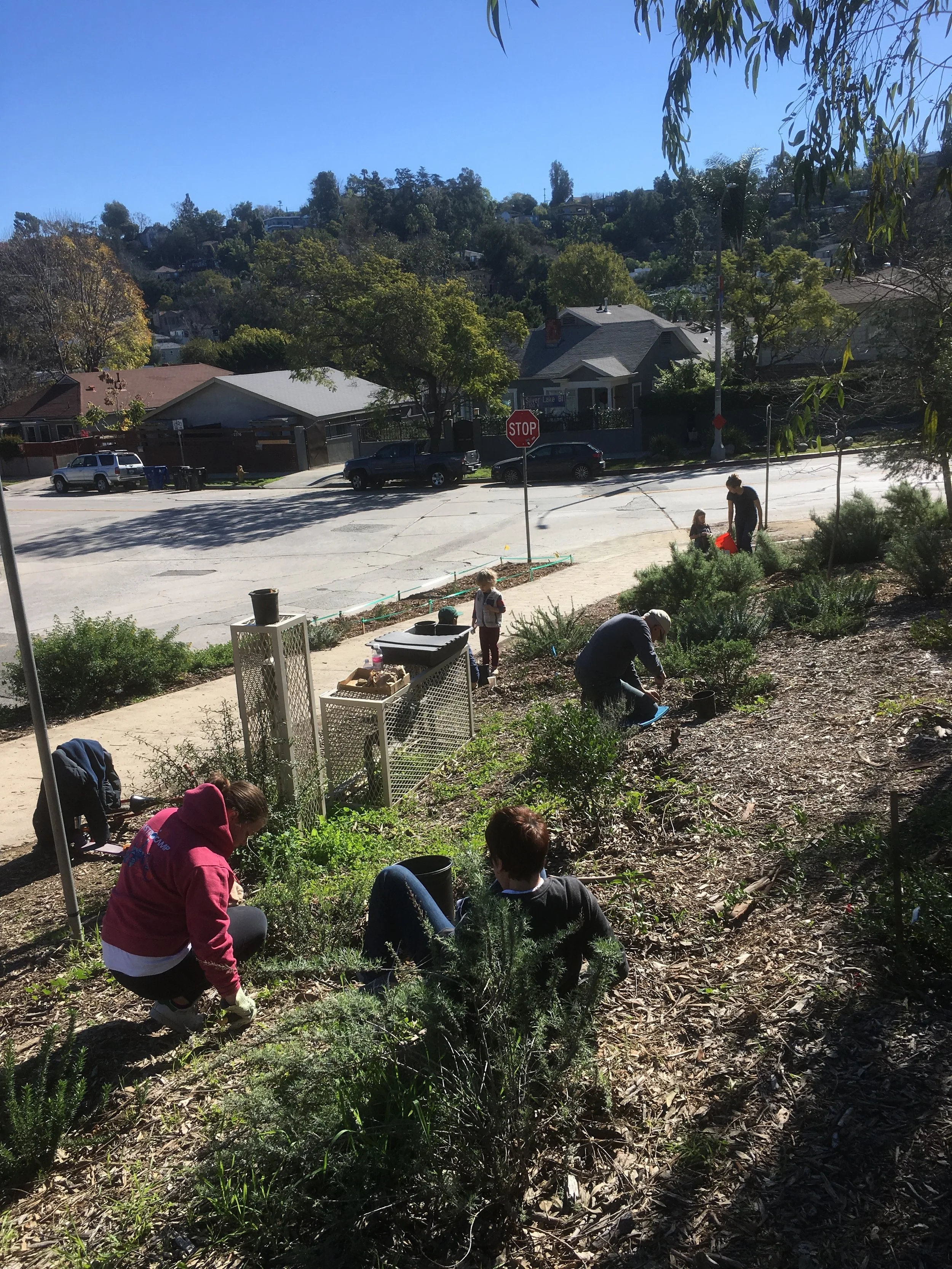 /The rains have come and so have new plants to the Armstrong "Up and Over". Thanks to Mother Nature and our amazing volunteers, the slope has an abundance of California native plants, as well as a new sprinkling of wild flower seeds. With more rain and sunshine we will see Poppies and Lupine. Be on the lookout this Spring for green, orange, and purple colors on your path.